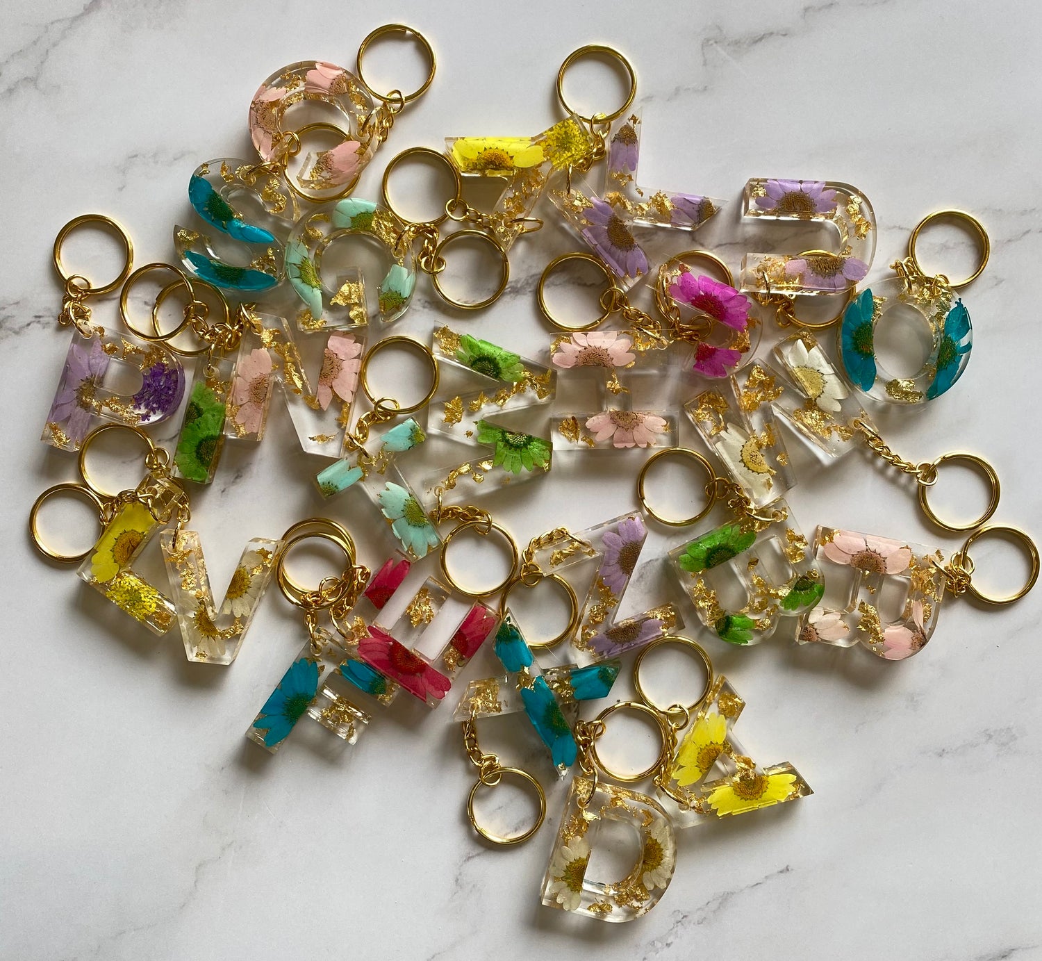 Customize your floral initial keychain by choosing your letter, daisy color, and foil color. Each keychain is handmade and uses real dried flowers. Perfect for any handbag, backpack, or set of keys. Please see last photo for example color options. Flower colors may vary slightly.